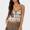 - Plaid cuff and pocket detailing
